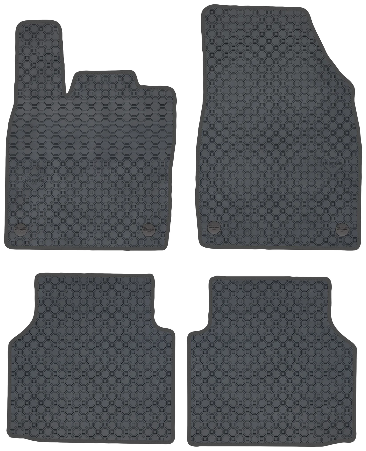 Wierzchnia strona dywaników, wypełniona na całej powierzchni strukturą ośmiokątów (plastra miodu) została pokryta podwójną warstwą gumy. Spód pokryty gumowymi wypustkami, które znacząco wydłużają żywotność materiału oraz zabezpieczają przed przesuwaniem się dywaników podczas jazdy. Specjalnie zaprojektowane wzmocnienie na dywaniku kierowcy zostało stworzone w oparciu o wieloletnie doświadczenie chroniąc najbardziej wrażliwą część dywanika przed przetarciem.