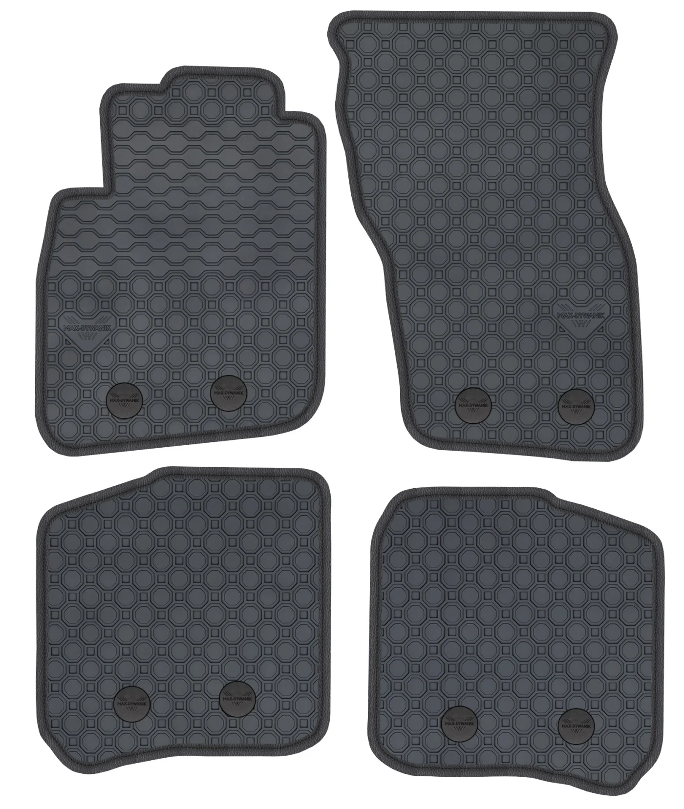 Wierzchnia strona dywaników, wypełniona na całej powierzchni strukturą ośmiokątów (plastra miodu) została pokryta podwójną warstwą gumy. Spód pokryty gumowymi wypustkami, które znacząco wydłużają żywotność materiału oraz zabezpieczają przed przesuwaniem się dywaników podczas jazdy. Specjalnie zaprojektowane wzmocnienie na dywaniku kierowcy zostało stworzone w oparciu o wieloletnie doświadczenie chroniąc najbardziej wrażliwą część dywanika przed przetarciem.