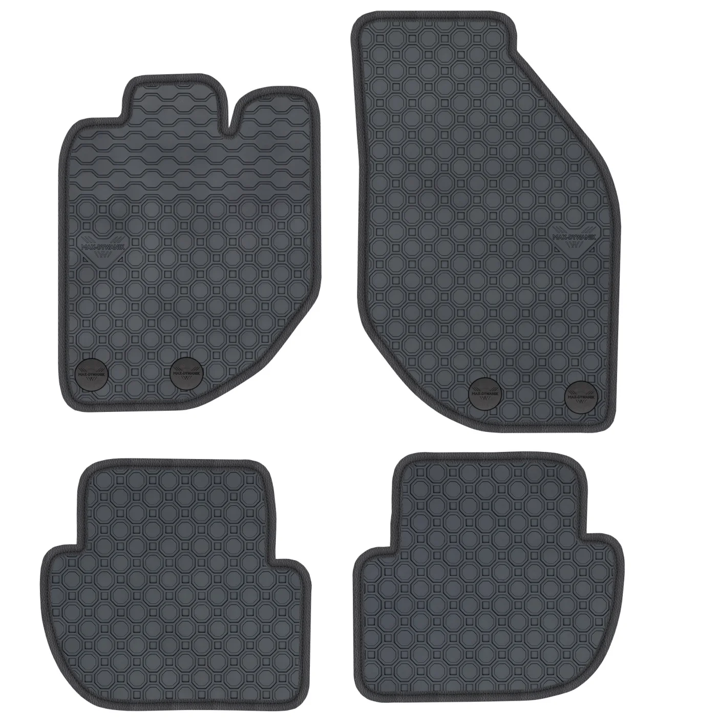 Wierzchnia strona dywaników, wypełniona na całej powierzchni strukturą ośmiokątów (plastra miodu) została pokryta podwójną warstwą gumy. Spód pokryty gumowymi wypustkami, które znacząco wydłużają żywotność materiału oraz zabezpieczają przed przesuwaniem się dywaników podczas jazdy. Specjalnie zaprojektowane wzmocnienie na dywaniku kierowcy zostało stworzone w oparciu o wieloletnie doświadczenie chroniąc najbardziej wrażliwą część dywanika przed przetarciem.