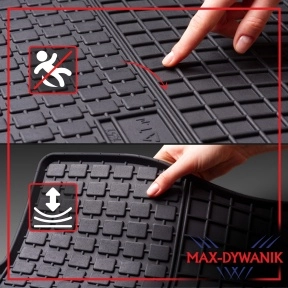 Dywanik kierowcy został dodatkowo wzmocniony na wysokości pięty, co zwiększa jego wytrzymałość w najbardziej eksploatowanym miejscu. Całość jest niezwykle łatwa w czyszczeniu – wystarczy przemyć wodą lub przetrzeć wilgotną szmatką, by dywaniki odzyskały świeżość i czystość.