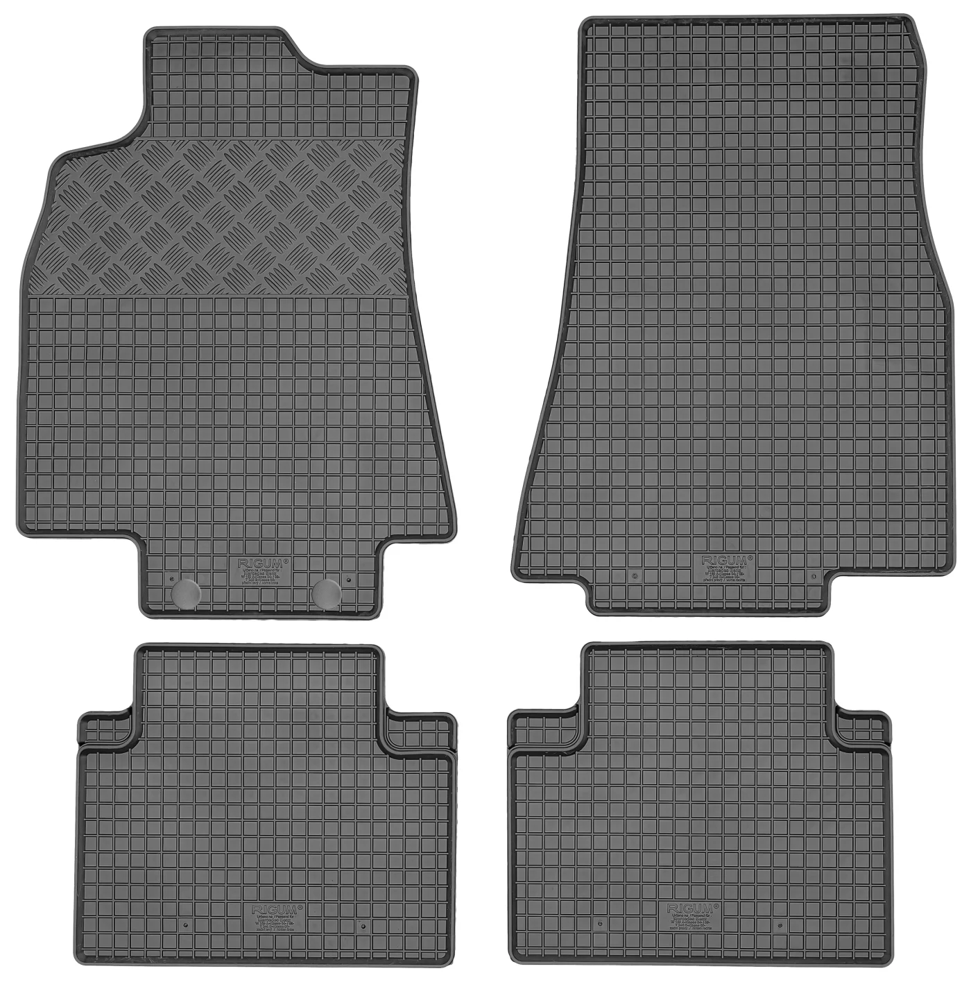 Przedmiotem oferty jest komplet dywaników renomowanej czeskiej firmy RIGUM idealnie dopasowanych do kształtu płyty podłogowej samochodu z delikatnym brzegiem ochronnym oraz strukturą kratki.