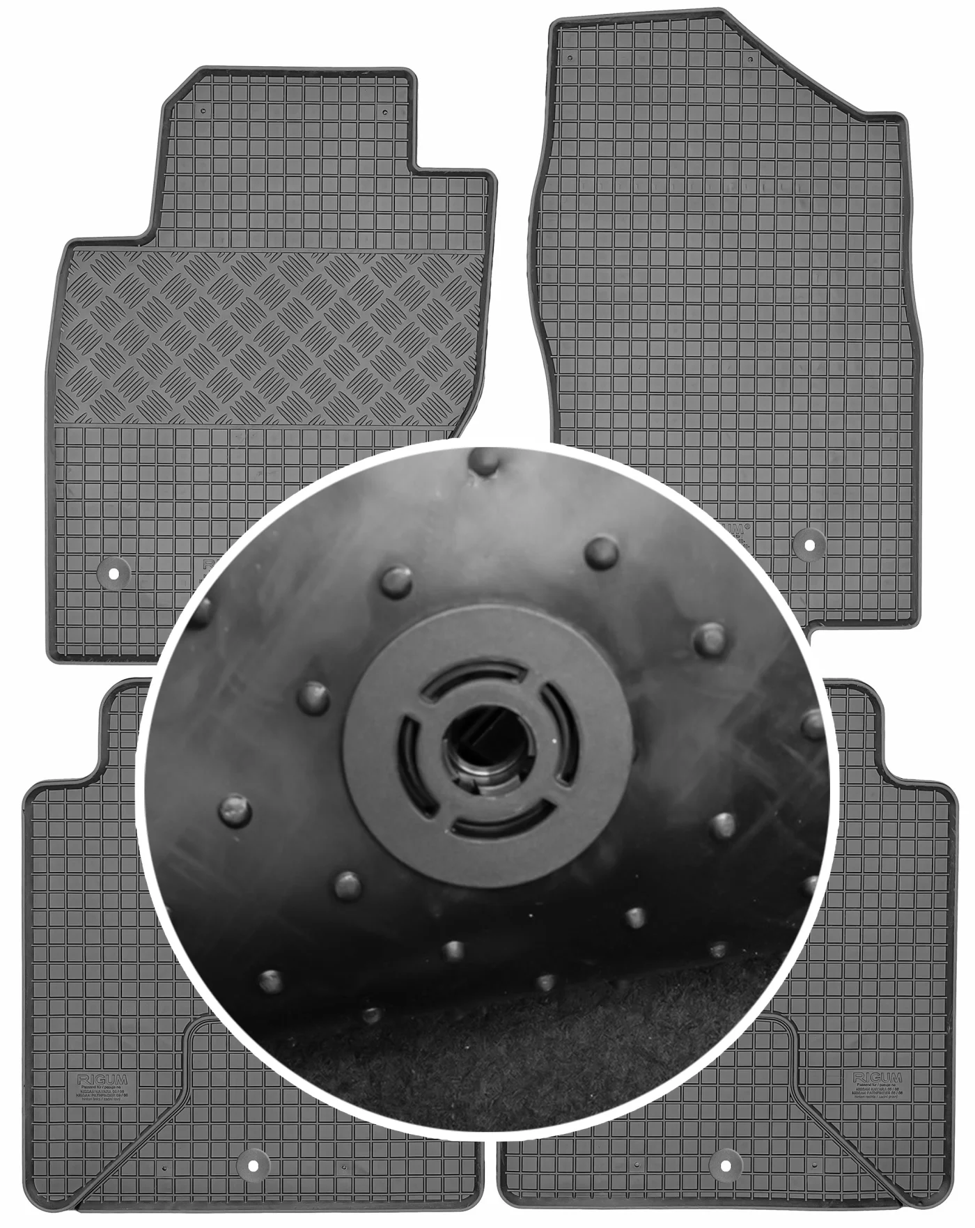Przedmiotem oferty jest komplet dywaników renomowanej czeskiej firmy RIGUM idealnie dopasowanych do kształtu płyty podłogowej samochodu z delikatnym brzegiem ochronnym oraz strukturą kratki.