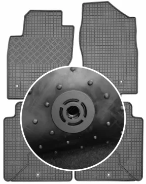 Estetyczny kołnierz (brzeg) ochronny dookoła dywaników skutecznie zatrzymuje wodę i brud, zabezpieczając oryginalną tapicerkę samochodową przed zabrudzeniem. Dywaniki od spodu posiadają zaprojektowane malutkie kolce, które w dodatkowy sposób chronią je przed przesuwaniem. Dywanik kierowcy został dodatkowo wzmocniony w miejscu najbardziej newralgicznym (miejsce styku pięty z powierzchnią dywanika) tak, aby zabezpieczyć dywanik przed przetarciem.