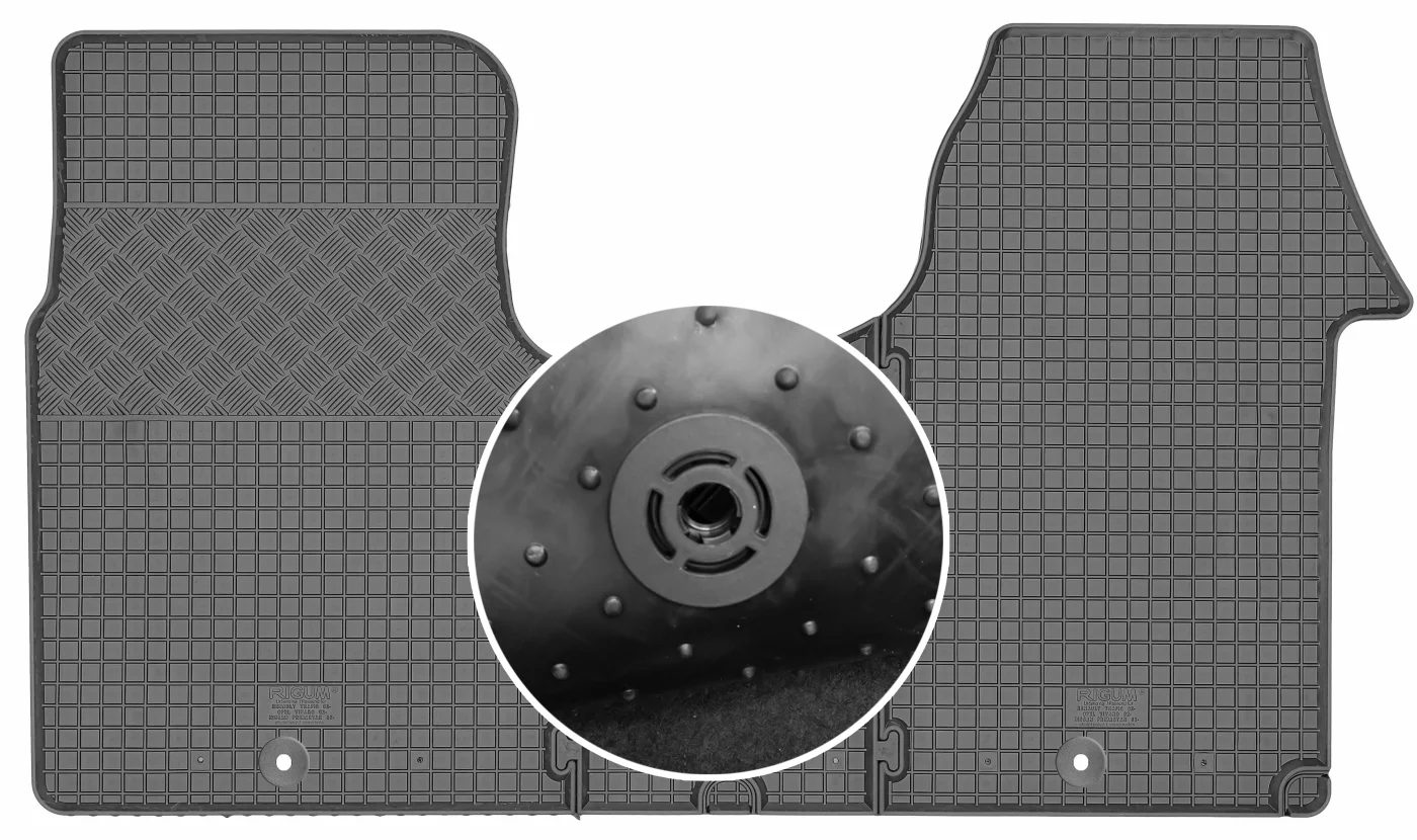 Przedmiotem oferty jest komplet dywaników renomowanej czeskiej firmy RIGUM idealnie dopasowanych do kształtu płyty podłogowej samochodu z delikatnym brzegiem ochronnym oraz strukturą kratki.