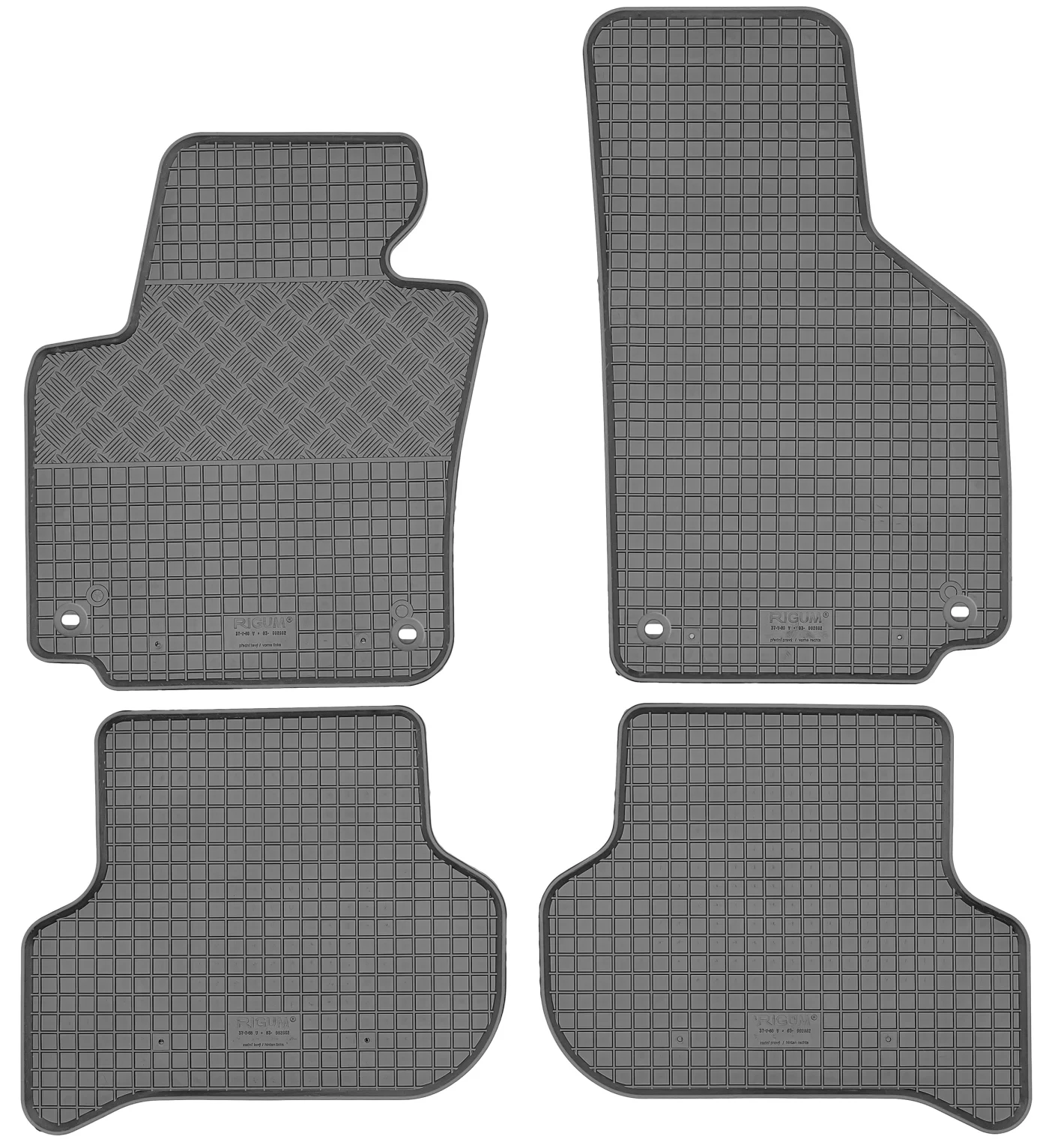 Przedmiotem oferty jest komplet dywaników renomowanej czeskiej firmy RIGUM idealnie dopasowanych do kształtu płyty podłogowej samochodu z delikatnym brzegiem ochronnym oraz strukturą kratki.