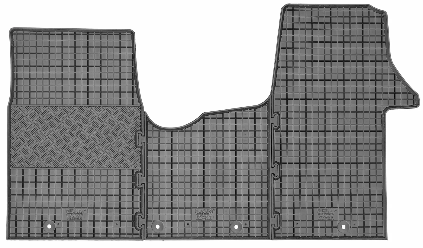 Przedmiotem oferty jest komplet dywaników renomowanej czeskiej firmy RIGUM idealnie dopasowanych do kształtu płyty podłogowej samochodu z delikatnym brzegiem ochronnym oraz strukturą kratki.
