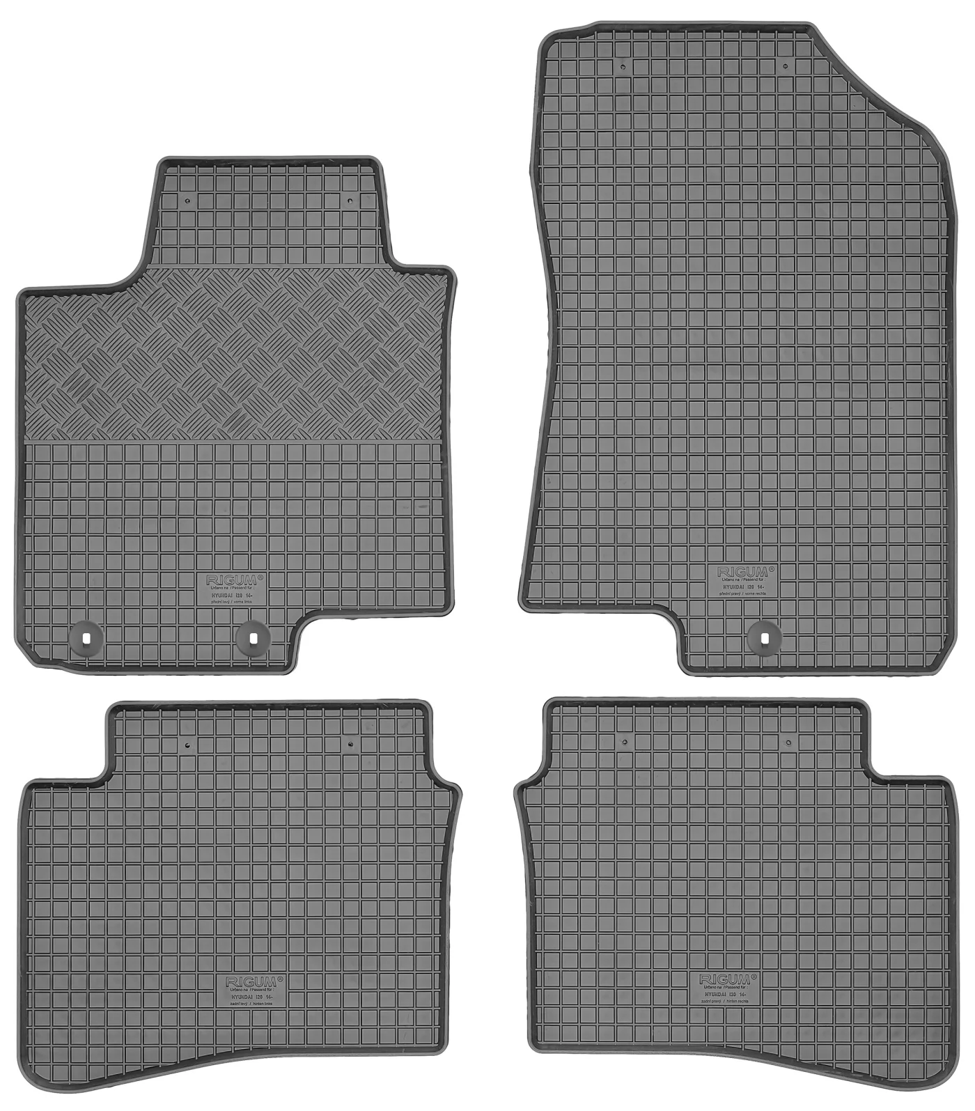 Przedmiotem oferty jest komplet dywaników renomowanej czeskiej firmy RIGUM idealnie dopasowanych do kształtu płyty podłogowej samochodu z delikatnym brzegiem ochronnym oraz strukturą kratki.