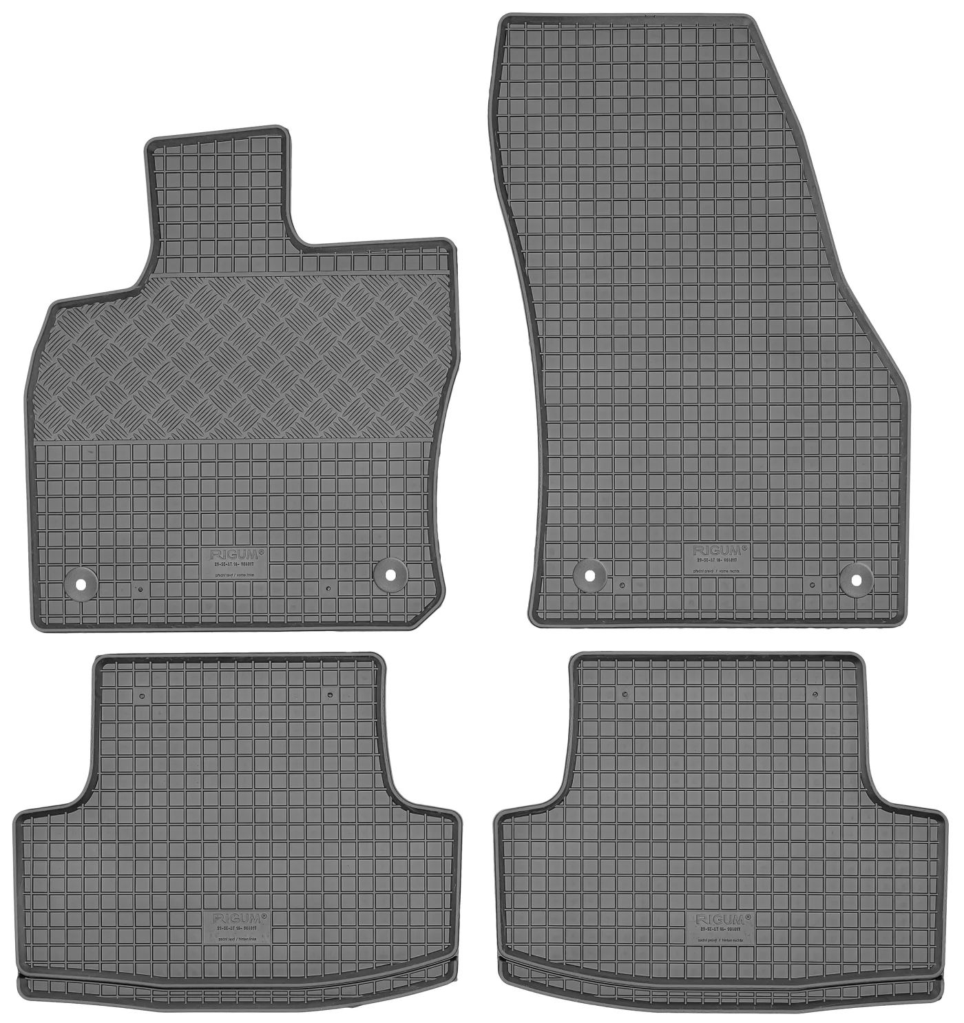 Przedmiotem oferty jest komplet dywaników renomowanej czeskiej firmy RIGUM idealnie dopasowanych do kształtu płyty podłogowej samochodu z delikatnym brzegiem ochronnym oraz strukturą kratki.
