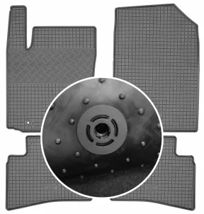 Przedmiotem oferty jest komplet dywaników renomowanej czeskiej firmy RIGUM idealnie dopasowanych do kształtu płyty podłogowej samochodu z delikatnym brzegiem ochronnym oraz strukturą kratki.
