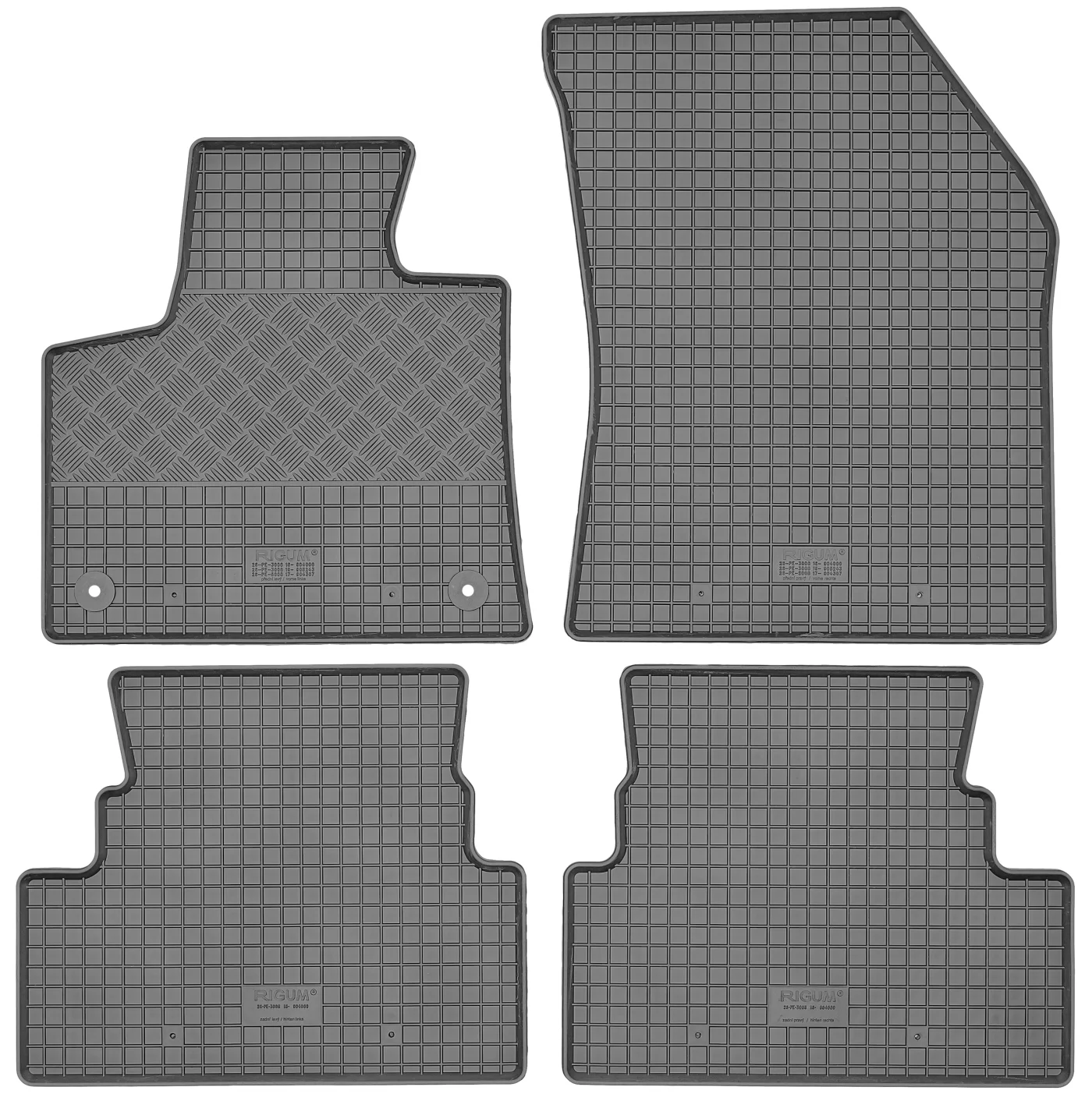Przedmiotem oferty jest komplet dywaników renomowanej czeskiej firmy RIGUM idealnie dopasowanych do kształtu płyty podłogowej samochodu z delikatnym brzegiem ochronnym oraz strukturą kratki.