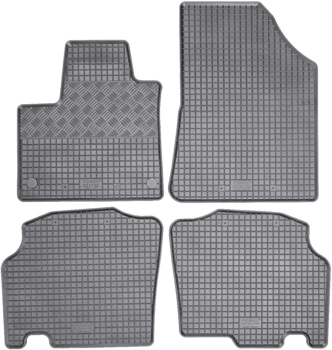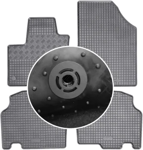 Przedmiotem oferty jest komplet dywaników renomowanej czeskiej firmy RIGUM idealnie dopasowanych do kształtu płyty podłogowej samochodu z delikatnym brzegiem ochronnym oraz strukturą kratki.