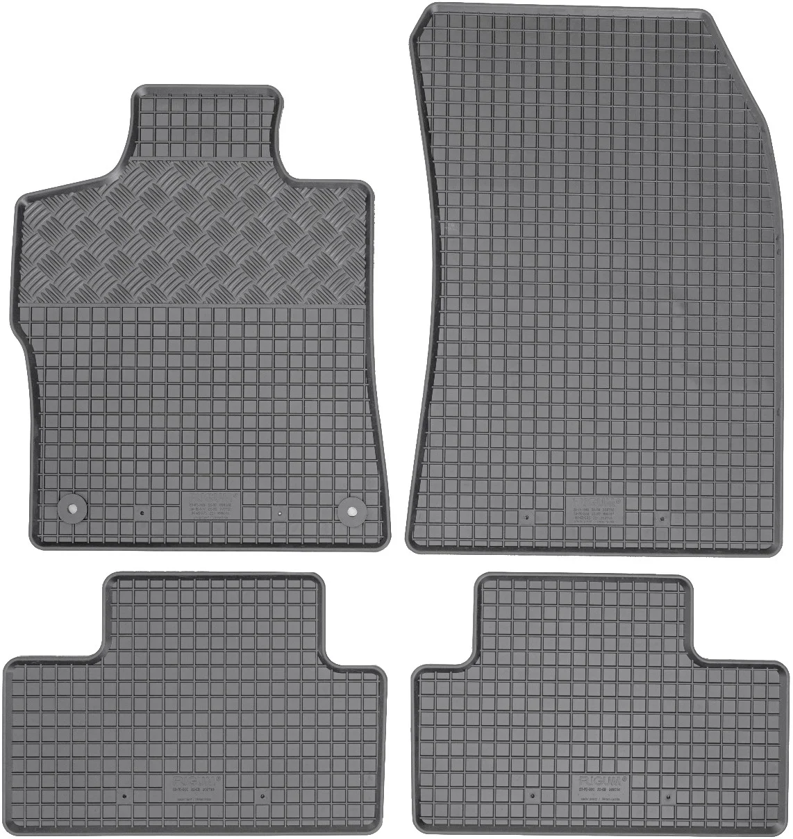 Przedmiotem oferty jest komplet dywaników renomowanej czeskiej firmy RIGUM idealnie dopasowanych do kształtu płyty podłogowej samochodu z delikatnym brzegiem ochronnym oraz strukturą kratki.