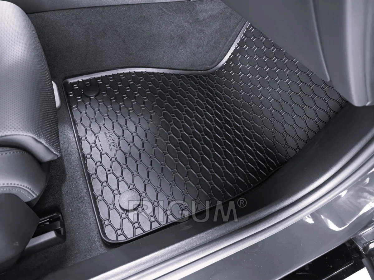 Przedmiotem oferty są dywaniki gumowe renomowanej czeskiej firmy RIGUM. Produkt został idealnie dopasowany do kształtu płyty podłogowej samochodu, a delikatny brzeg ochronny oraz struktura plastra miodu skutecznie chronią wnętrze auta przed zabrudzeniami, zapewniając jednocześnie estetyczny wygląd.