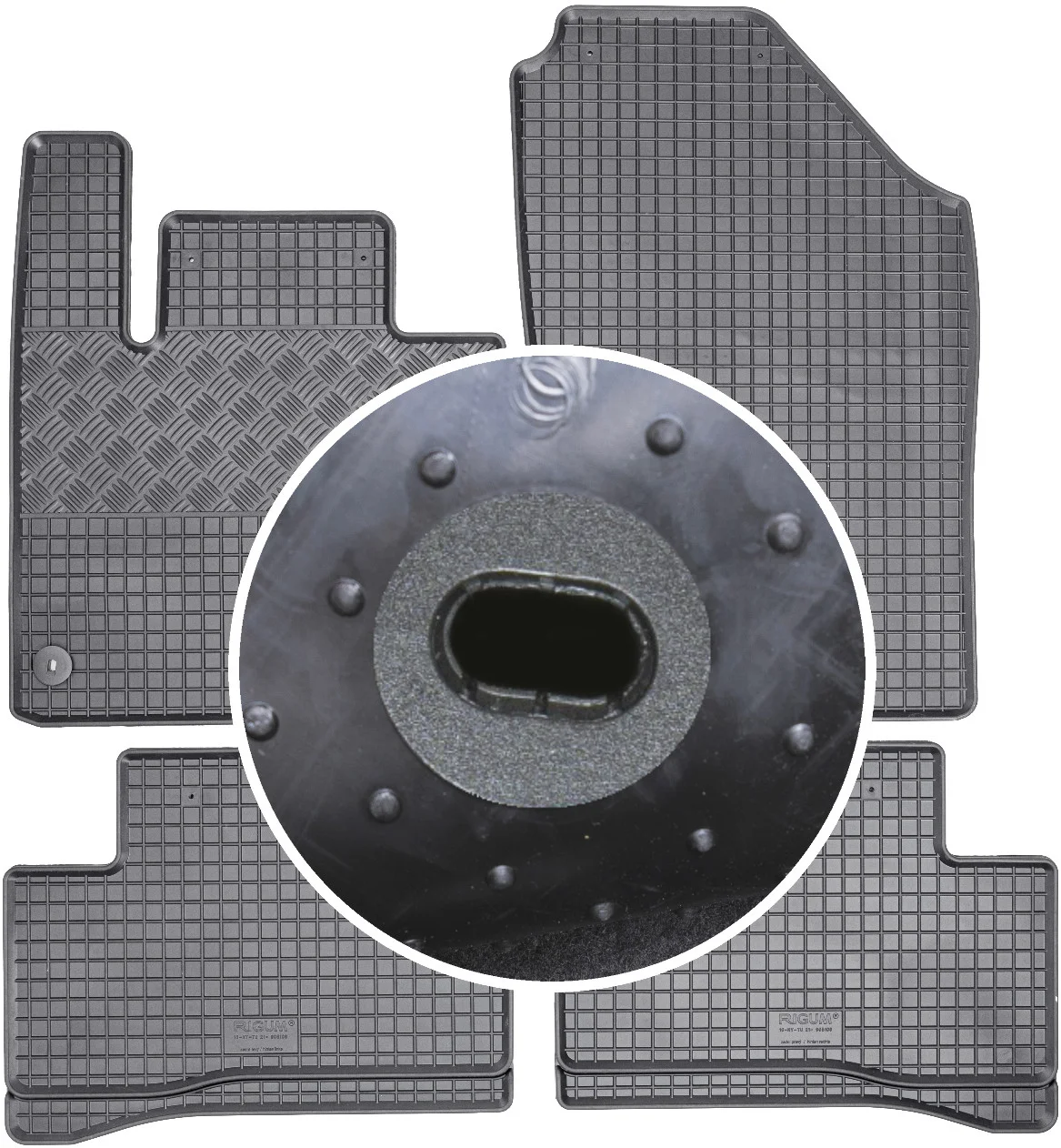 Przedmiotem oferty jest komplet dywaników renomowanej czeskiej firmy RIGUM idealnie dopasowanych do kształtu płyty podłogowej samochodu z delikatnym brzegiem ochronnym oraz strukturą kratki.