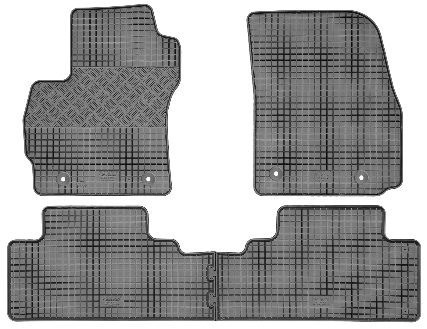 Przedmiotem oferty jest komplet dywaników renomowanej czeskiej firmy RIGUM idealnie dopasowanych do kształtu płyty podłogowej samochodu z delikatnym brzegiem ochronnym oraz strukturą kratki.