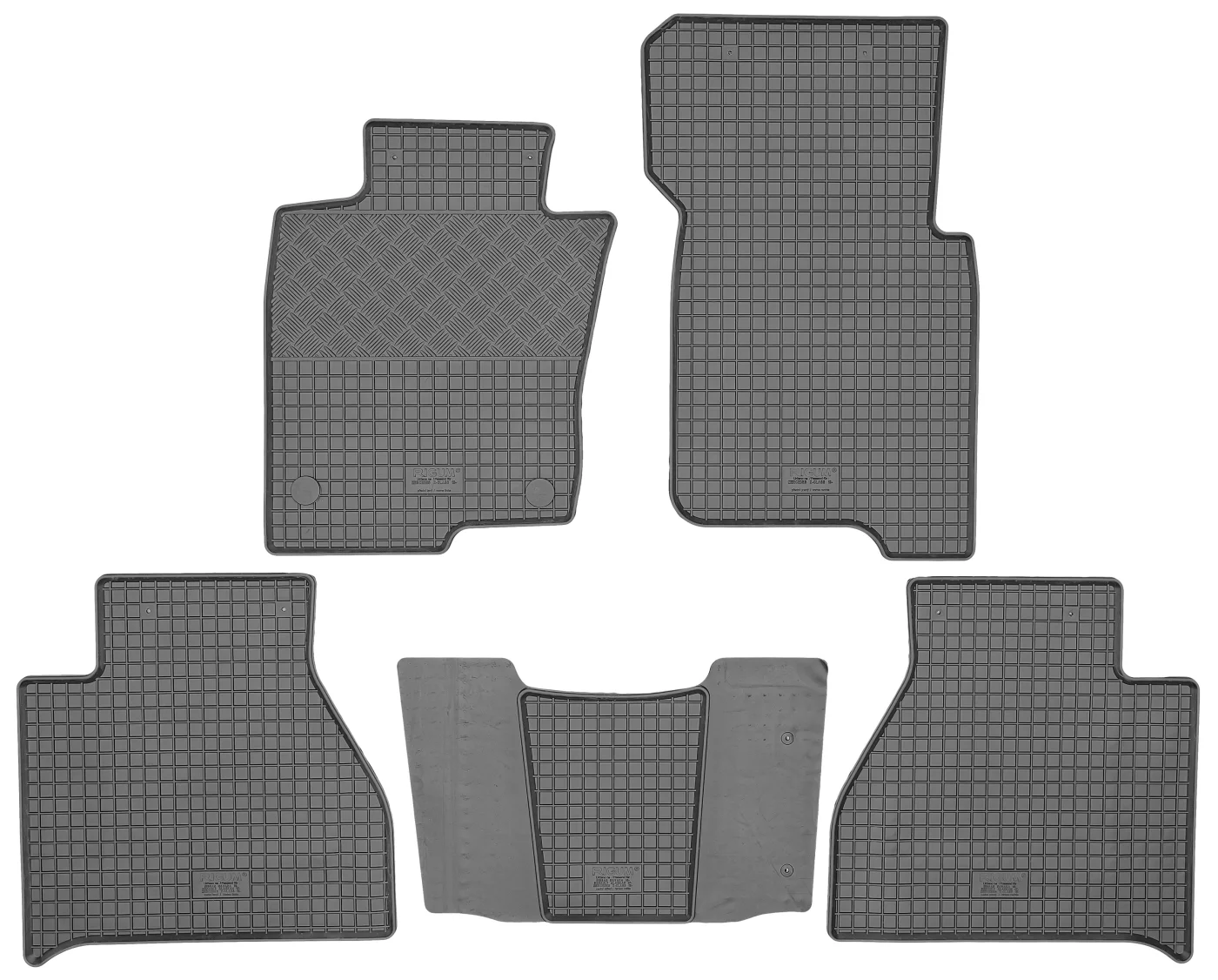 Przedmiotem oferty jest komplet dywaników renomowanej czeskiej firmy RIGUM idealnie dopasowanych do kształtu płyty podłogowej samochodu z delikatnym brzegiem ochronnym oraz strukturą kratki.