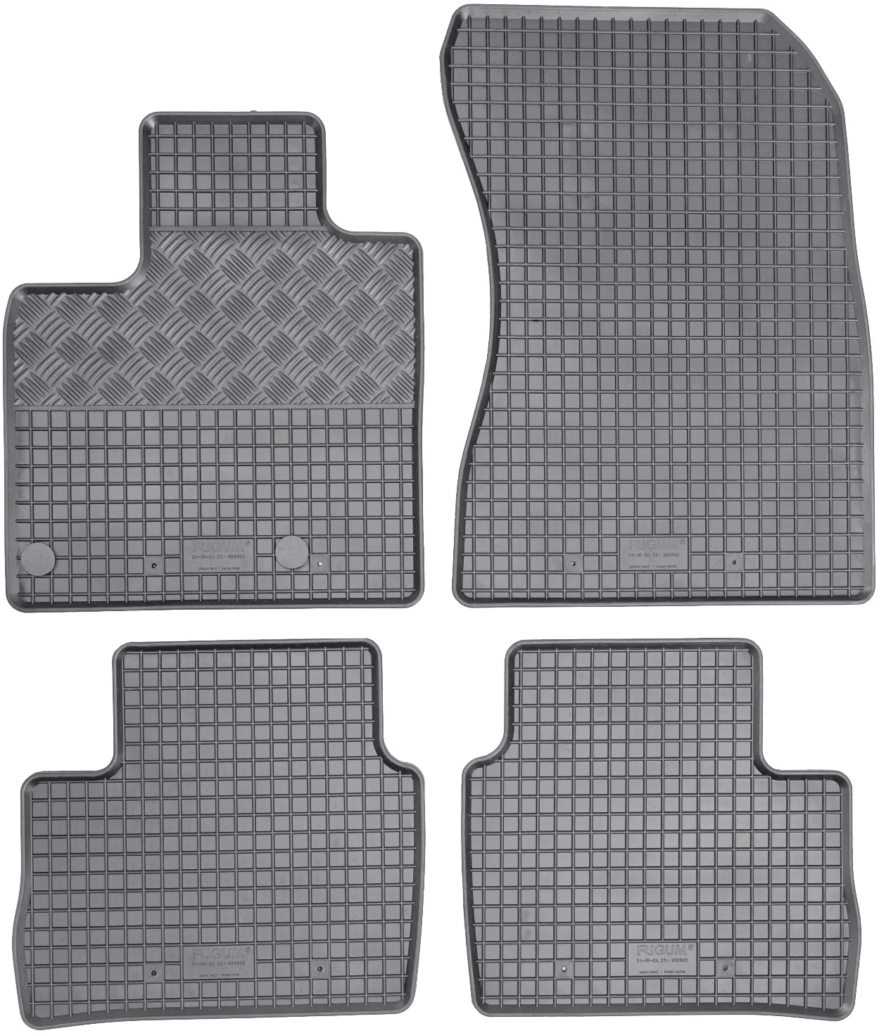 Przedmiotem oferty jest komplet dywaników renomowanej czeskiej firmy RIGUM idealnie dopasowanych do kształtu płyty podłogowej samochodu z delikatnym brzegiem ochronnym oraz strukturą kratki.