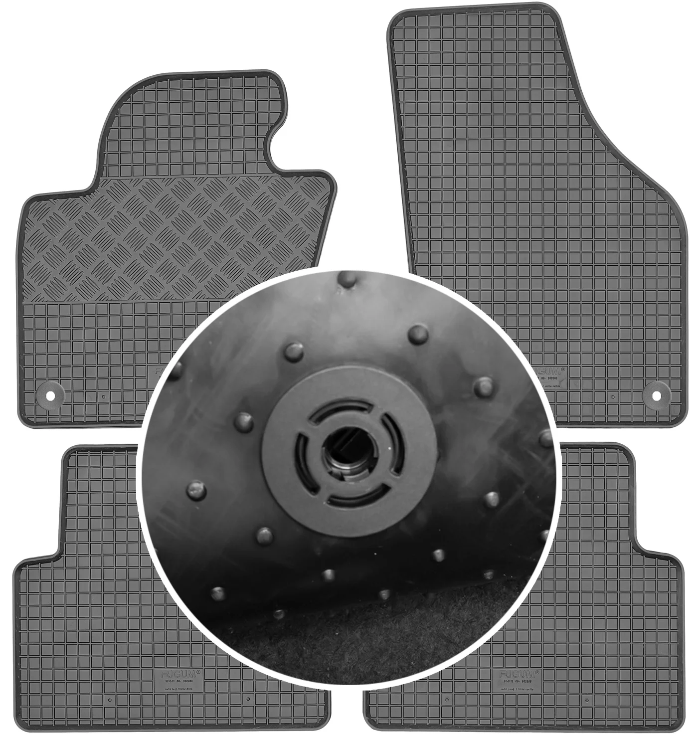 Przedmiotem oferty jest komplet dywaników renomowanej czeskiej firmy RIGUM idealnie dopasowanych do kształtu płyty podłogowej samochodu z delikatnym brzegiem ochronnym oraz strukturą kratki.
