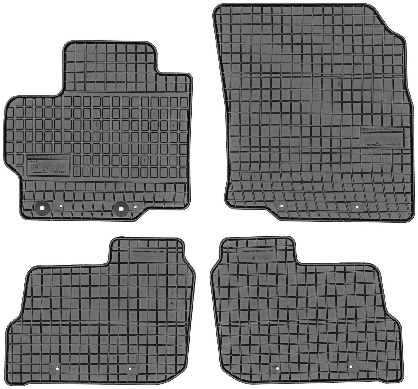 Zestaw stworzony przez firmę MAX-DYWANIK składający się z dywaników gumowych firmy FROGUM, które zostały zmodyfikowane o dedykowane mocowania wyprodukowane i zamontowane przez firmę MAX-DYWANIK według oryginalnegho rozstawu mocowań w samochodzie.