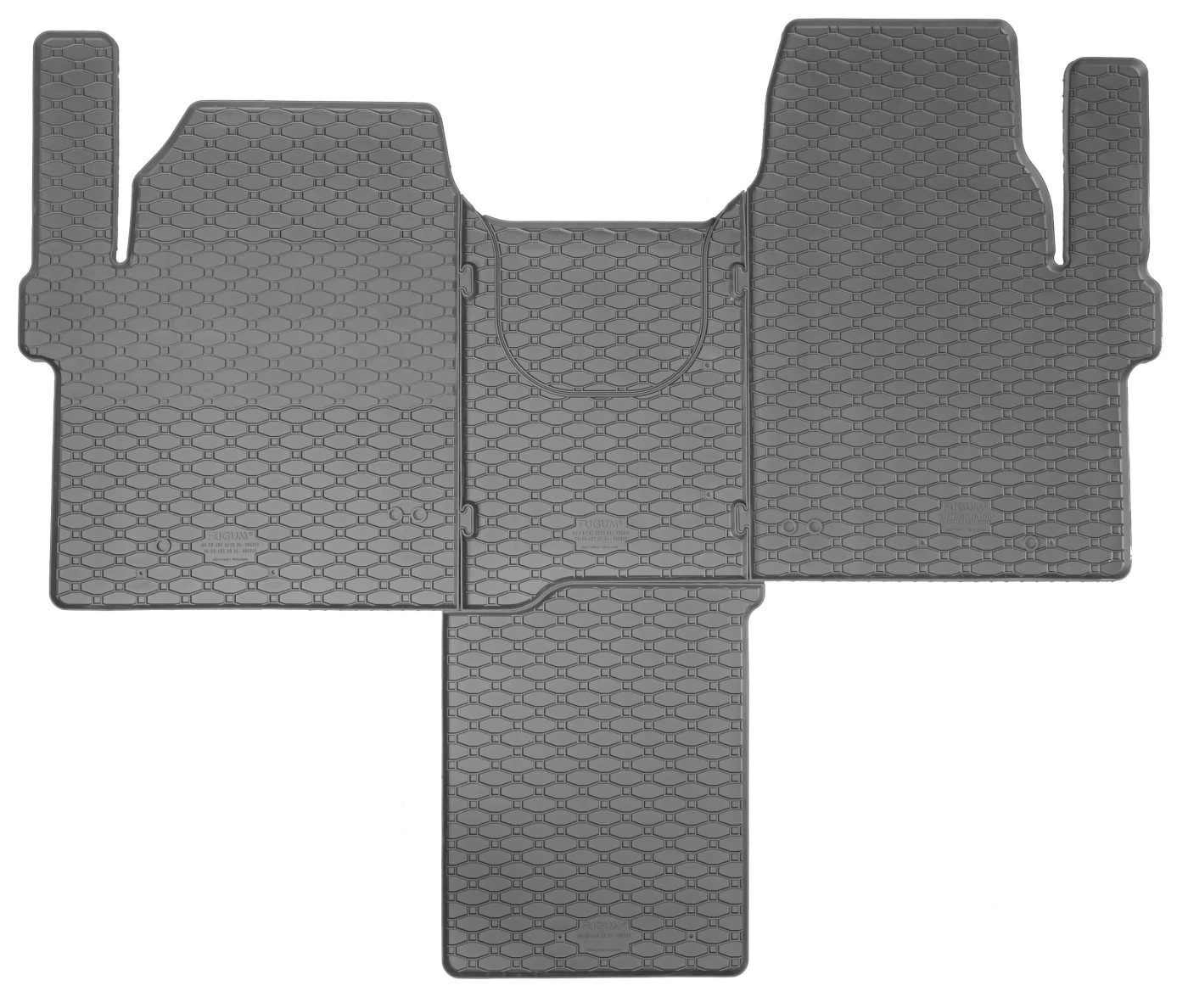 Przedmiotem oferty są dywaniki gumowe renomowanej czeskiej firmy RIGUM. Produkt został idealnie dopasowany do kształtu płyty podłogowej samochodu, a delikatny brzeg ochronny oraz struktura plastra miodu skutecznie chronią wnętrze auta przed zabrudzeniami, zapewniając jednocześnie estetyczny wygląd.