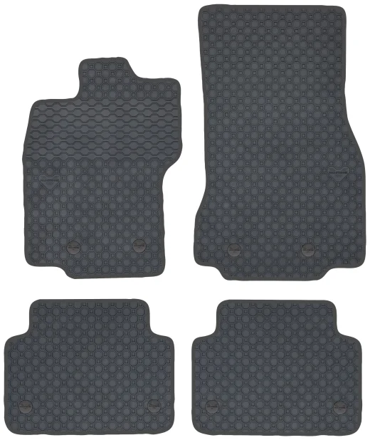 Kolor: Czarny Kolor obszycia: Ekoskóra: czarna + nić czarna Rodzaj obszycia: Nubuk czarny Surowiec: Guma naturalna Dywaniki: Dopasowane pod model Przeznaczenie: Dywaniki podłogowe