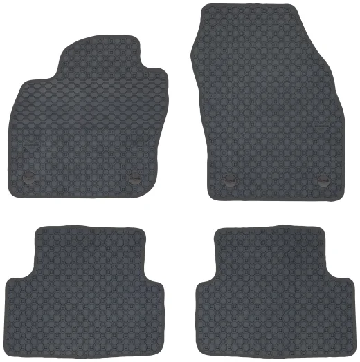 Kolor: Czarny Kolor obszycia: Ekoskóra: czarna + nić czarna Rodzaj obszycia: Nubuk czarny Surowiec: Guma naturalna Dywaniki: Dopasowane pod model Przeznaczenie: Dywaniki podłogowe