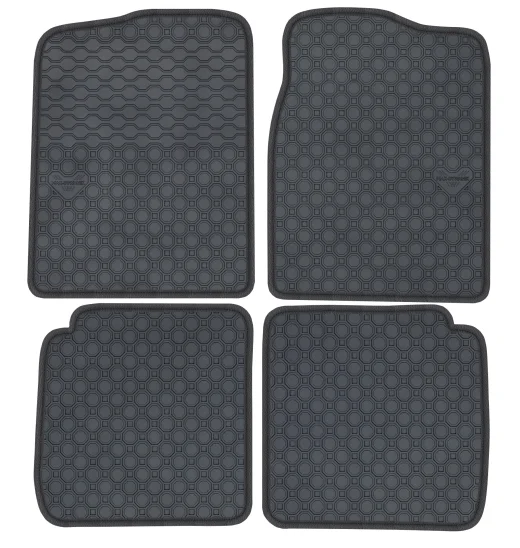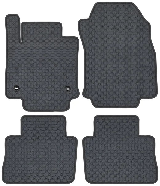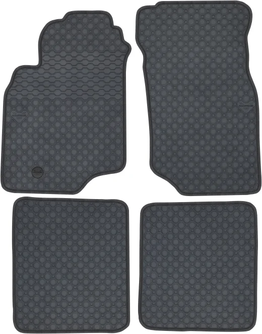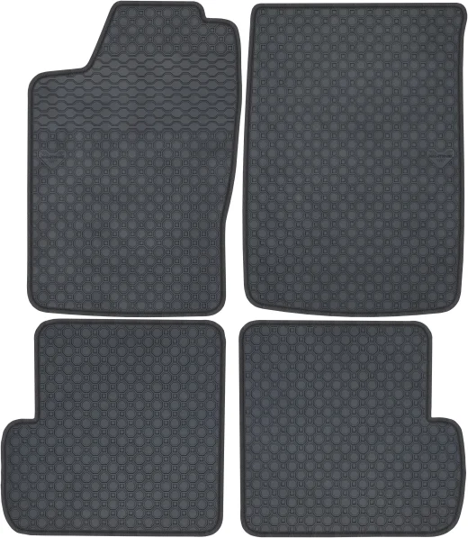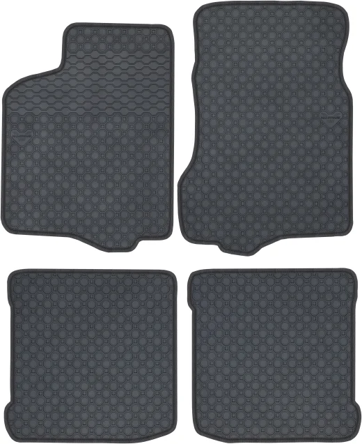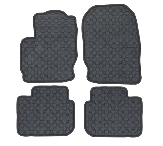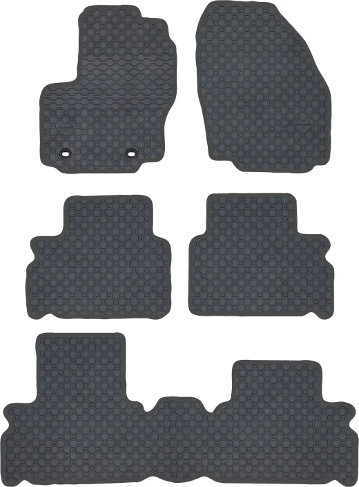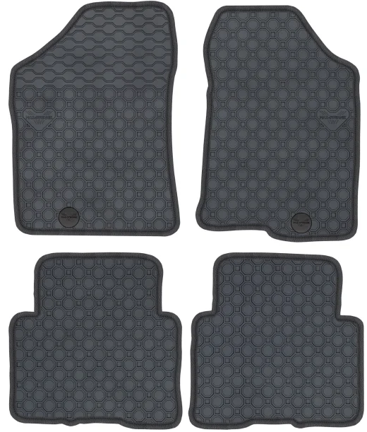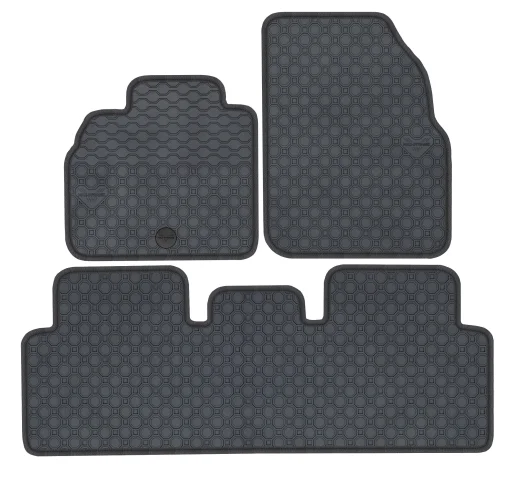 Kolor: Czarny Kolor obszycia: Nitka czarna Rodzaj obszycia: Nubuk czarny Surowiec: Guma naturalna Dywaniki: Dopasowane pod model Przeznaczenie: Dywaniki gumowe