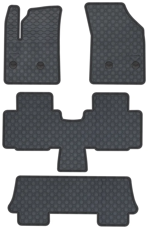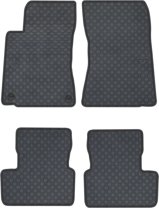 Kolor: Czarny Kolor obszycia: Ekoskóra: czarna + nić czarna Rodzaj obszycia: Nubuk czarny Surowiec: Guma naturalna Dywaniki: Dopasowane pod model Przeznaczenie: Dywaniki podłogowe
