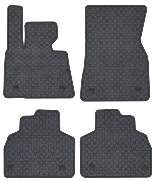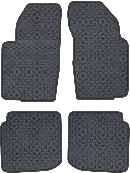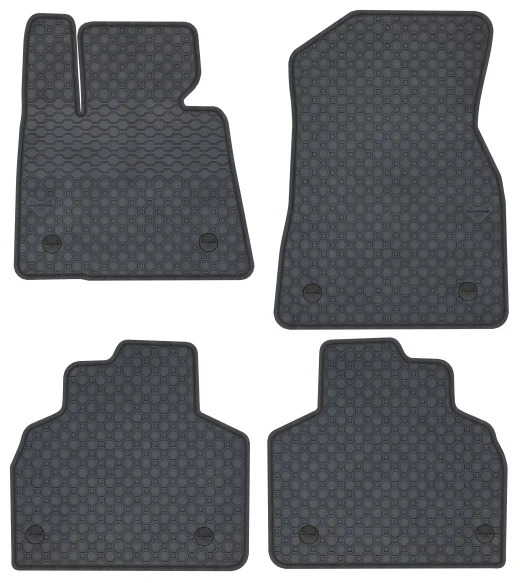 Kolor: Czarny Kolor obszycia: Ekoskóra: czarna + nić czarna Rodzaj obszycia: Nubuk czarny Surowiec: Guma naturalna Dywaniki: Dopasowane pod model Przeznaczenie: Dywaniki podłogowe