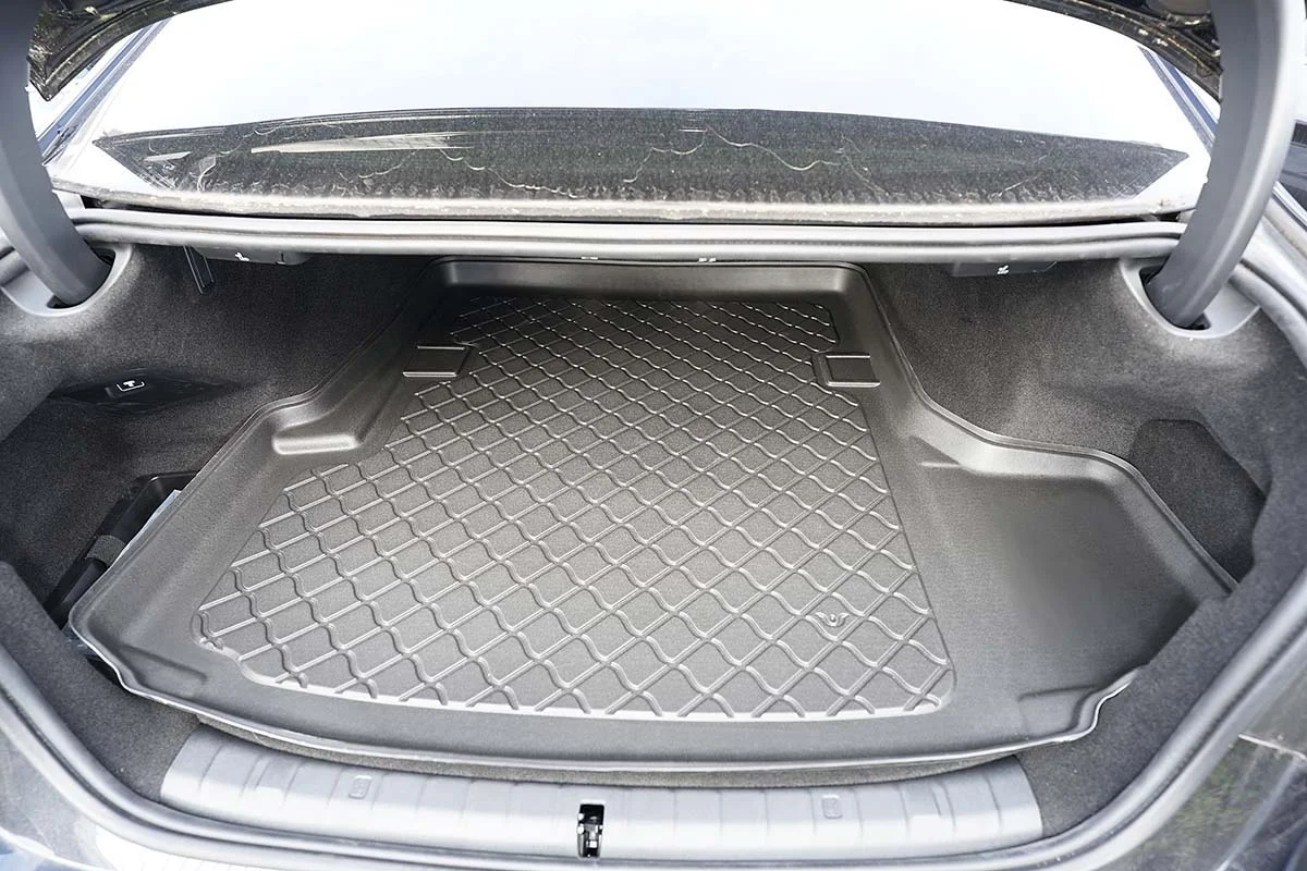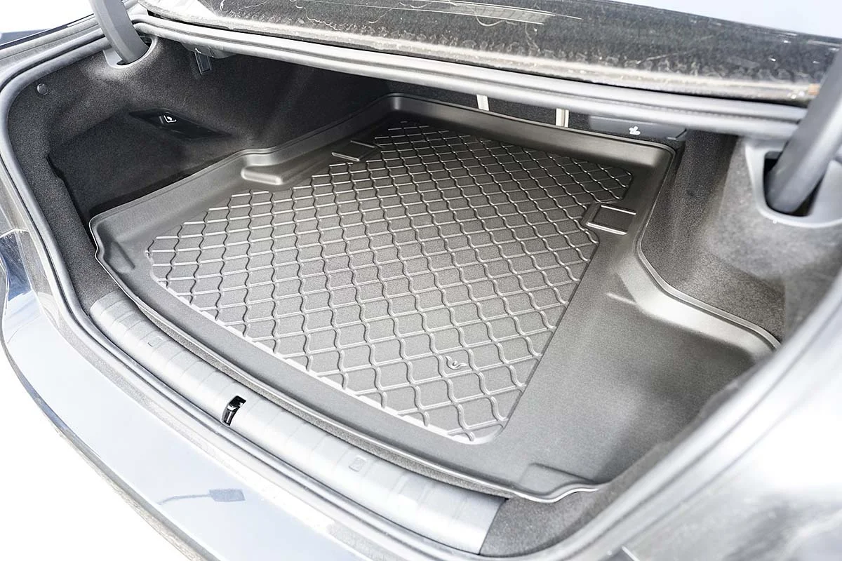 Specjalna faktura powierzchni zapobiega przesuwaniu się przewożonych przedmiotów, a elastyczna konstrukcja ułatwia dostęp do przestrzeni pod podłogą bagażnika, np. do koła zapasowego. Eleganckie, satynowe wykończenie oraz subtelne logo producenta nadają produktowi nowoczesny charakter, podkreślając dbałość o detale.