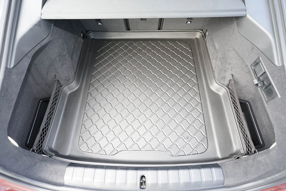 Specjalna faktura powierzchni zapobiega przesuwaniu się przewożonych przedmiotów, a elastyczna konstrukcja ułatwia dostęp do przestrzeni pod podłogą bagażnika, np. do koła zapasowego. Eleganckie, satynowe wykończenie oraz subtelne logo producenta nadają produktowi nowoczesny charakter, podkreślając dbałość o detale.