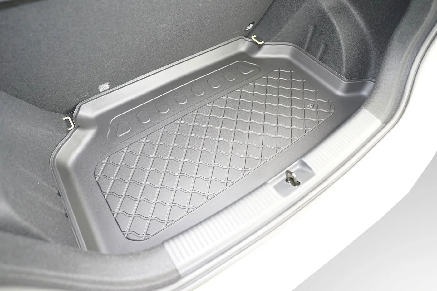 Specjalna faktura powierzchni zapobiega przesuwaniu się przewożonych przedmiotów, a elastyczna konstrukcja ułatwia dostęp do przestrzeni pod podłogą bagażnika, np. do koła zapasowego. Eleganckie, satynowe wykończenie oraz subtelne logo producenta nadają produktowi nowoczesny charakter, podkreślając dbałość o detale.