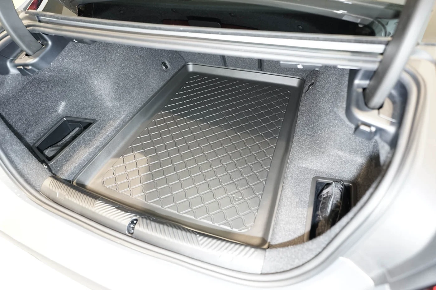 Specjalna faktura powierzchni zapobiega przesuwaniu się przewożonych przedmiotów, a elastyczna konstrukcja ułatwia dostęp do przestrzeni pod podłogą bagażnika, np. do koła zapasowego. Eleganckie, satynowe wykończenie oraz subtelne logo producenta nadają produktowi nowoczesny charakter, podkreślając dbałość o detale.