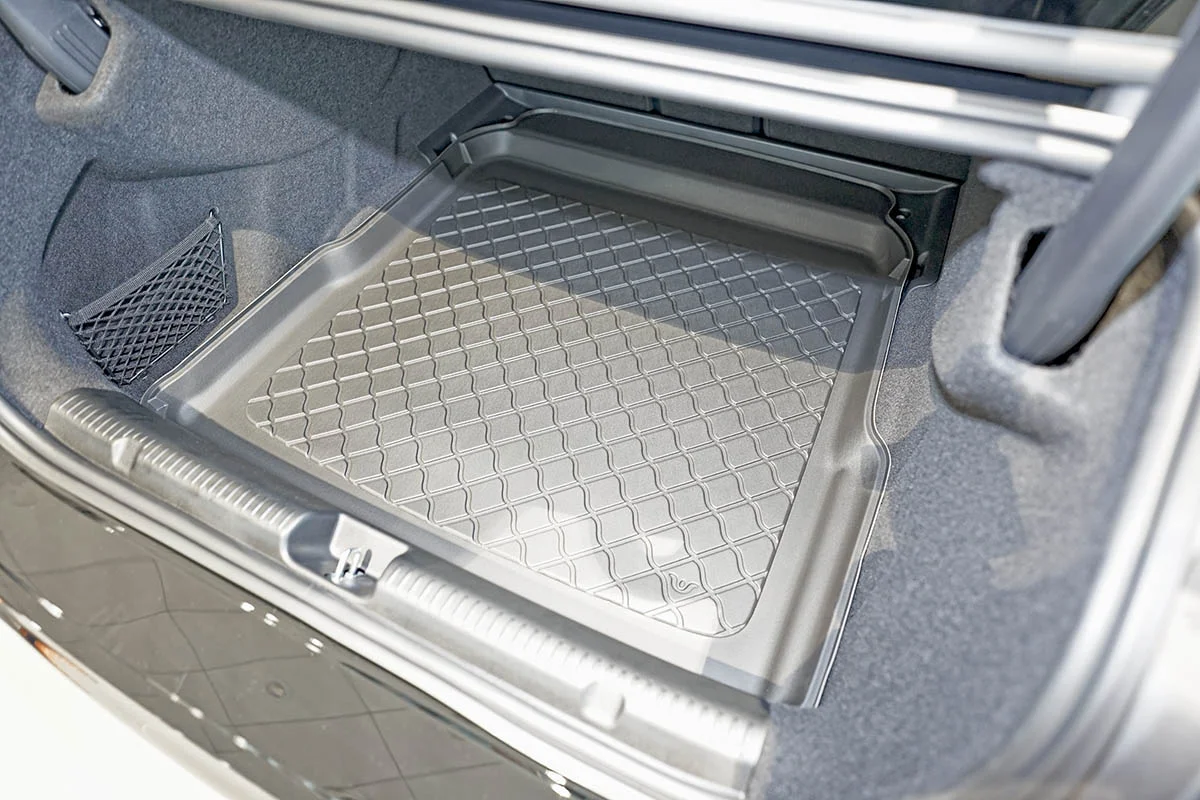 Specjalna faktura powierzchni zapobiega przesuwaniu się przewożonych przedmiotów, a elastyczna konstrukcja ułatwia dostęp do przestrzeni pod podłogą bagażnika, np. do koła zapasowego. Eleganckie, satynowe wykończenie oraz subtelne logo producenta nadają produktowi nowoczesny charakter, podkreślając dbałość o detale.