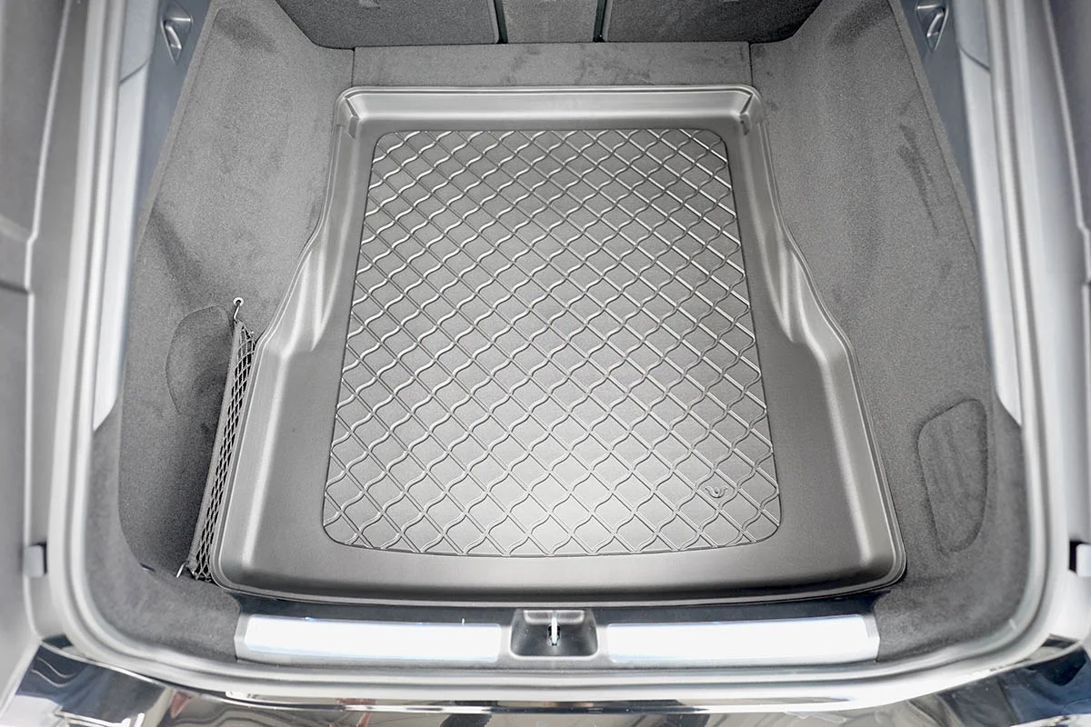 Specjalna faktura powierzchni zapobiega przesuwaniu się przewożonych przedmiotów, a elastyczna konstrukcja ułatwia dostęp do przestrzeni pod podłogą bagażnika, np. do koła zapasowego. Eleganckie, satynowe wykończenie oraz subtelne logo producenta nadają produktowi nowoczesny charakter, podkreślając dbałość o detale.