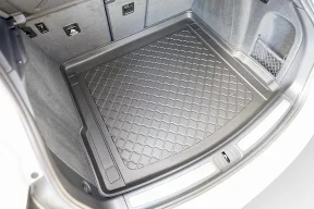 Specjalna faktura powierzchni zapobiega przesuwaniu się przewożonych przedmiotów, a elastyczna konstrukcja ułatwia dostęp do przestrzeni pod podłogą bagażnika, np. do koła zapasowego. Eleganckie, satynowe wykończenie oraz subtelne logo producenta nadają produktowi nowoczesny charakter, podkreślając dbałość o detale.