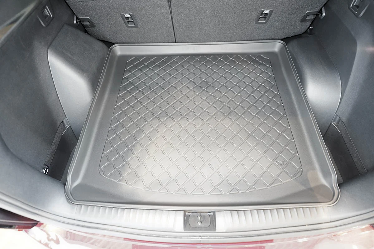 Specjalna faktura powierzchni zapobiega przesuwaniu się przewożonych przedmiotów, a elastyczna konstrukcja ułatwia dostęp do przestrzeni pod podłogą bagażnika, np. do koła zapasowego. Eleganckie, satynowe wykończenie oraz subtelne logo producenta nadają produktowi nowoczesny charakter, podkreślając dbałość o detale.