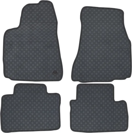 Kolor: Czarny Kolor obszycia: Ekoskóra: czarna + nić czarna Rodzaj obszycia: Nubuk czarny Surowiec: Guma naturalna Dywaniki: Dopasowane pod model Przeznaczenie: Dywaniki podłogowe