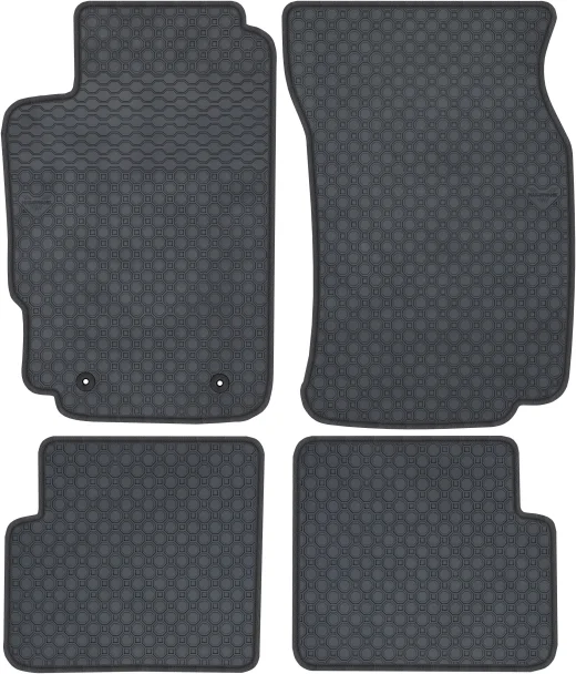 Kolor: Czarny Kolor obszycia: Ekoskóra: czarna + nić czarna Rodzaj obszycia: Nubuk czarny Surowiec: Guma naturalna Dywaniki: Dopasowane pod model Przeznaczenie: Dywaniki podłogowe