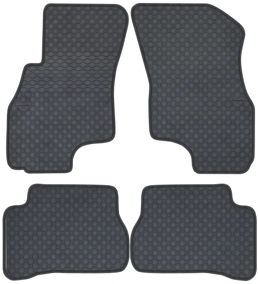 Kolor: Czarny Kolor obszycia: Ekoskóra: czarna + nić czarna Rodzaj obszycia: Nubuk czarny Surowiec: Guma naturalna Dywaniki: Dopasowane pod model Przeznaczenie: Dywaniki podłogowe