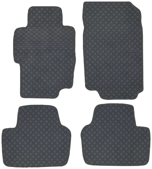 Kolor: Czarny Kolor obszycia: Ekoskóra: czarna + nić czarna Rodzaj obszycia: Nubuk czarny Surowiec: Guma naturalna Dywaniki: Dopasowane pod model Przeznaczenie: Dywaniki podłogowe