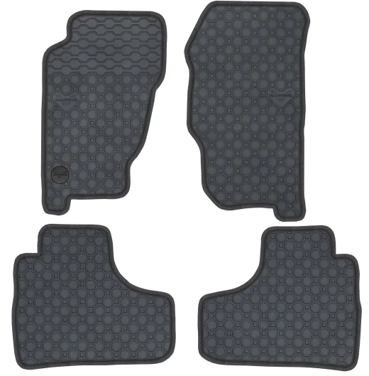 Kolor: Czarny Kolor obszycia: Ekoskóra: czarna + nić czarna Rodzaj obszycia: Nubuk czarny Surowiec: Guma naturalna Dywaniki: Dopasowane pod model Przeznaczenie: Dywaniki podłogowe