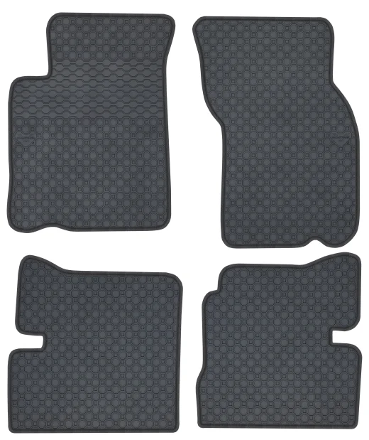 Kolor: Czarny Kolor obszycia: Ekoskóra: czarna + nić czarna Rodzaj obszycia: Nubuk czarny Surowiec: Guma naturalna Dywaniki: Dopasowane pod model Przeznaczenie: Dywaniki podłogowe