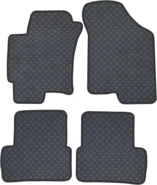Kolor: Czarny Kolor obszycia: Ekoskóra: czarna + nić czarna Rodzaj obszycia: Nubuk czarny Surowiec: Guma naturalna Dywaniki: Dopasowane pod model Przeznaczenie: Dywaniki podłogowe
