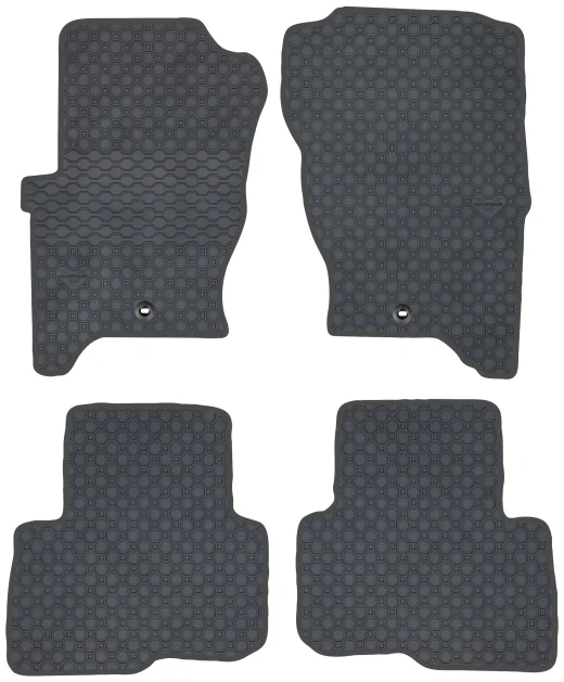 Kolor: Czarny Kolor obszycia: Ekoskóra: czarna + nić czarna Rodzaj obszycia: Nubuk czarny Surowiec: Guma naturalna Dywaniki: Dopasowane pod model Przeznaczenie: Dywaniki podłogowe