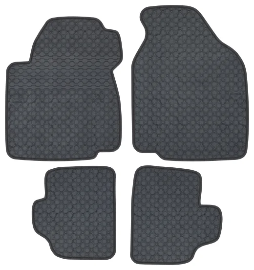 Kolor: Czarny Kolor obszycia: Ekoskóra: czarna + nić czarna Rodzaj obszycia: Nubuk czarny Surowiec: Guma naturalna Dywaniki: Dopasowane pod model Przeznaczenie: Dywaniki podłogowe