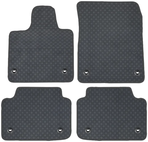 Kolor: Czarny Kolor obszycia: Ekoskóra: czarna + nić czarna Rodzaj obszycia: Nubuk czarny Surowiec: Guma naturalna Dywaniki: Dopasowane pod model Przeznaczenie: Dywaniki podłogowe