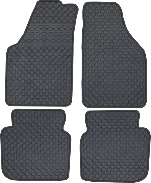 Kolor: Czarny Kolor obszycia: Ekoskóra: czarna + nić czarna Rodzaj obszycia: Nubuk czarny Surowiec: Guma naturalna Dywaniki: Dopasowane pod model Przeznaczenie: Dywaniki podłogowe