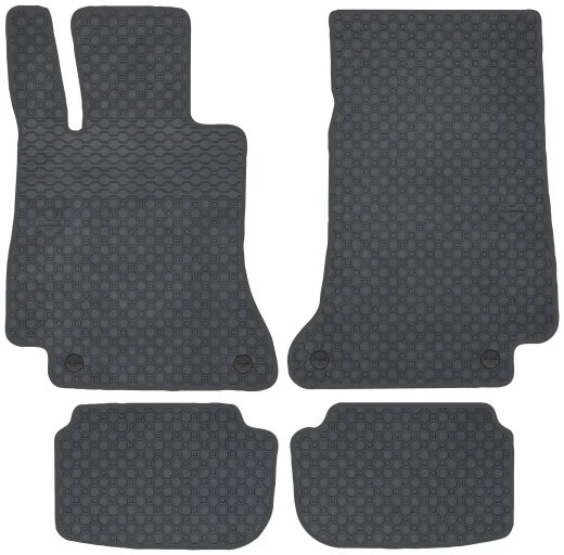 Kolor: Czarny Kolor obszycia: Ekoskóra: czarna + nić czarna Rodzaj obszycia: Nubuk czarny Surowiec: Guma naturalna Dywaniki: Dopasowane pod model Przeznaczenie: Dywaniki podłogowe