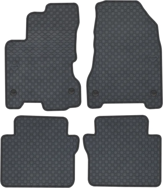 Kolor: Czarny Kolor obszycia: Ekoskóra: czarna + nić czarna Rodzaj obszycia: Nubuk czarny Surowiec: Guma naturalna Dywaniki: Dopasowane pod model Przeznaczenie: Dywaniki podłogowe
